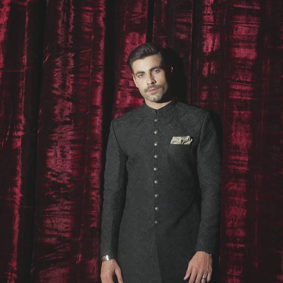 - Detailing: Black Self Embroidered Sherwani