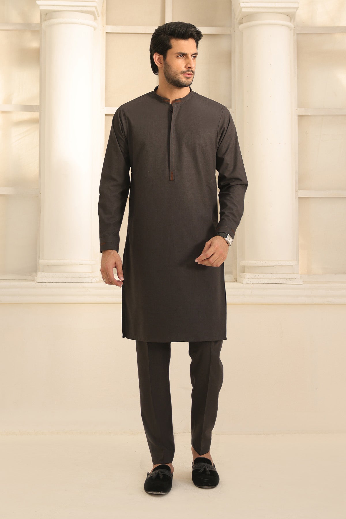 - Description: Blended Fabric Kurta with Pants with detailed Stitching embellishments.