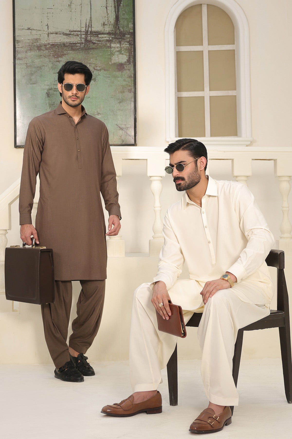 - Description: Spread Collar Kurta Shalwar with Fancy buttons and stitching embellishments.