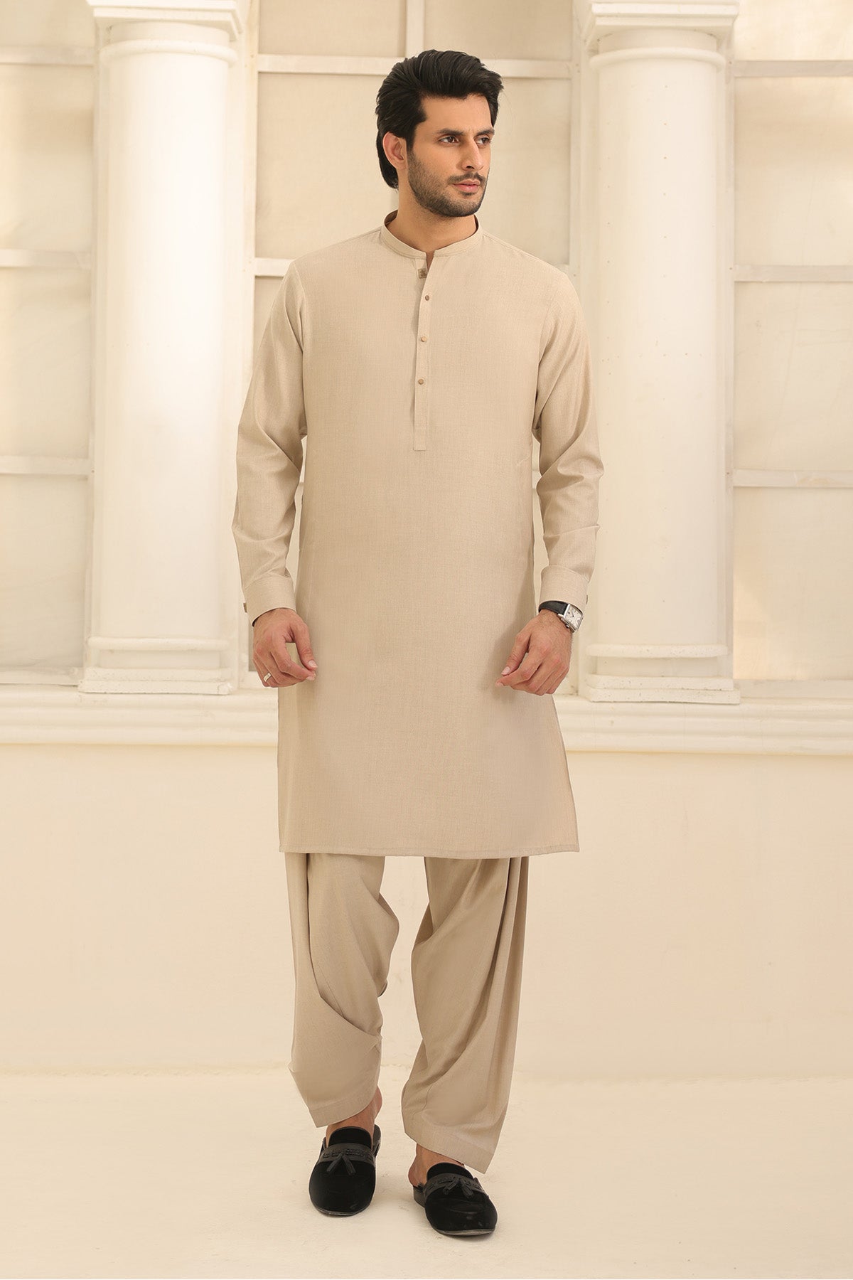 - Description: Blended two tone Shalwar suit with our signature logo and stitching embellishments.