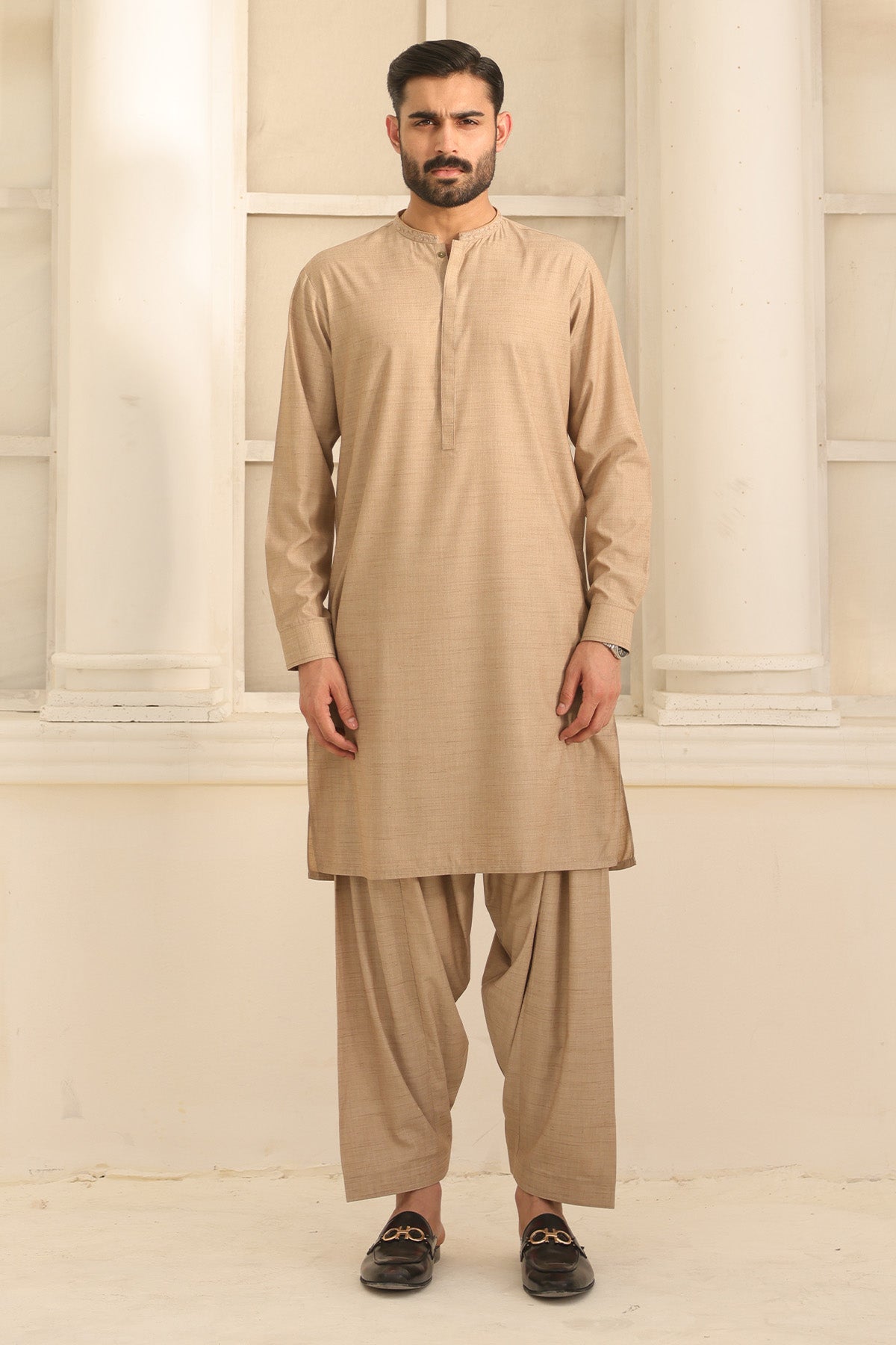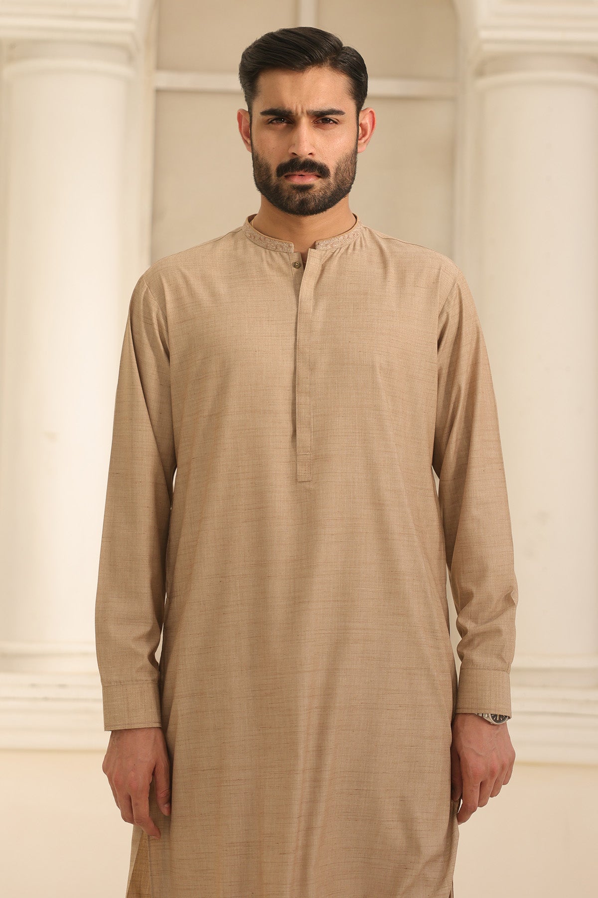 - Description: Embroidered kurta with Shalwar with self Blended Fabric.