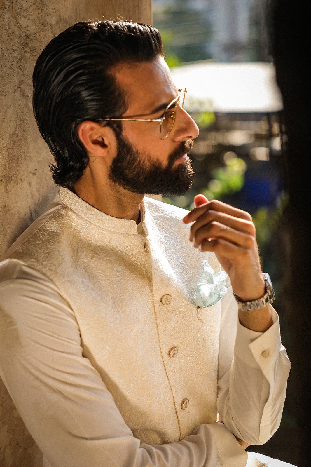 OFFWHITE SELF EMBROIDRED WAIST COAT - WC-308