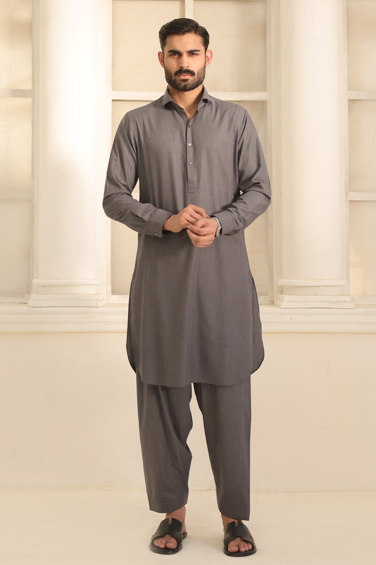 - Description: Spread Collar Kurta Shalwar with Fancy buttons and stitching establishments