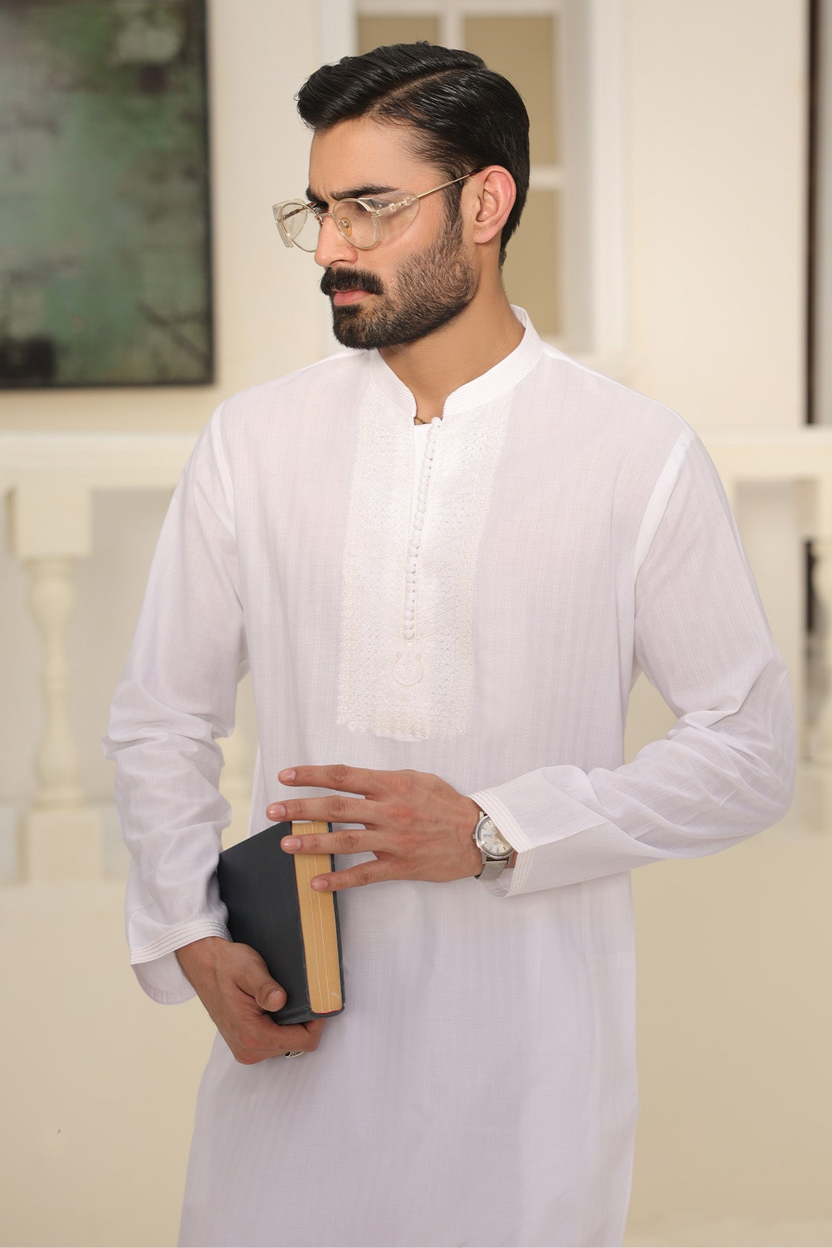 - Description: 100% cotton striped Fabric Kurta with Pants , Embroidered Front with Buttons